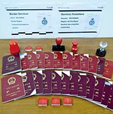 CBSA在涉及王洵的案件中,當時搜出的中國護照及印章。CBSA提供