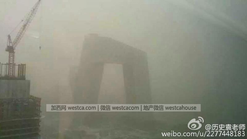 没入沙尘中的央视大楼。