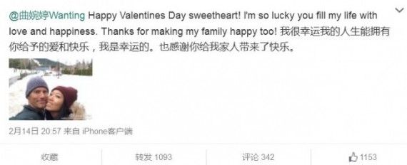 羅品信在其新浪微博上公開示愛。(取自新浪微博)