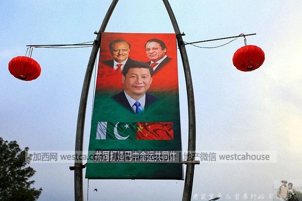 使館區外是壹條寬闊且綠化美化的非常好的大道,名叫Shara Dastoor,它壹端連接巴國首都機場,另壹端直通總理府,估計此道便是該國的迎賓大道。迎賓大道路中央的綠化帶每隔拾幾米豎壹塊大標語牌,上面是習大大和巴基斯坦總統、總理的頭像,習大大居中,該國領導人頭像明顯刻意縮小並做成背景——實乃罕見!每塊大標語牌上都寫著不同的口號,中英文交替,諸如“巴中友誼萬古長青”“巴中是鐵哥們”等。