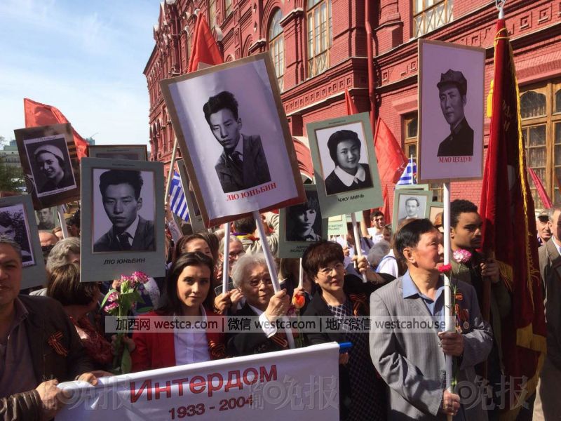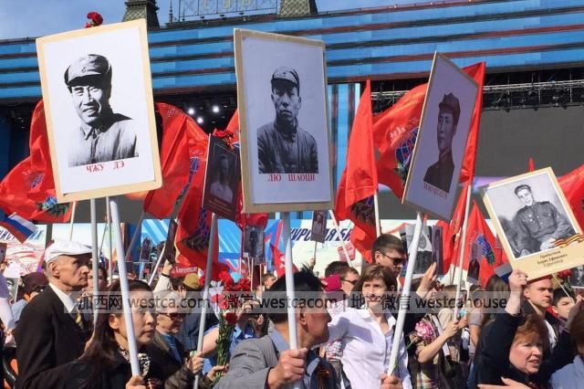 當地時間5月9日下午叁點,俄羅斯,“不朽軍團”游行在莫斯科紅場舉行,共有20萬人參加。肆位中國代表及部分親屬將舉著毛澤東、毛岸英、劉少奇、劉允斌、朱德、朱敏、王立臣7人的肖像走過紅場,紀念衛國戰爭期間為反法西斯做過貢獻的老兵。此外,俄羅斯總統普京舉父親肖像參加游行。圖為毛澤東等7人肖像亮相紅場“不朽軍團”游行。圖片來自法制晚報