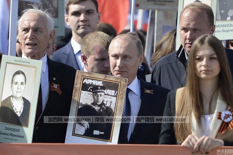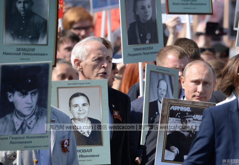 圖為俄羅斯總統普京舉父親肖像參加“不朽軍團”游行。CFP