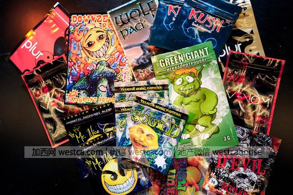 美國禁毒署實驗室中合成大麻,即所謂“香料”的空包裝。