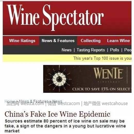 在Google中搜索 “Fakeicewine”或者“Counterfeit icewine”,其實看了壹些內容會覺得非常窘迫,人家說得好聽壹點會說:假冰酒在亞洲市場泛濫成災。人家“刻薄”壹點直接就說:中國市場的加拿大冰酒80%可能是假冰酒。你們猜猜這個“刻薄”的人是誰?WS!!Wine Spectator。截圖為證。