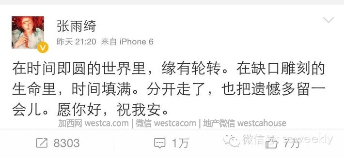 昨晚,張雨綺發了條疑似離婚的圍脖