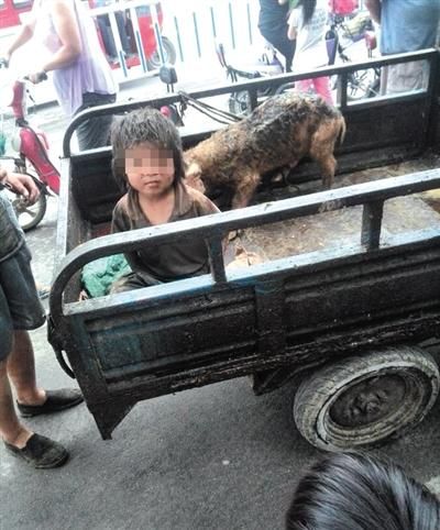 近日,有关河南濮阳清丰县车子营村的小男孩洪波的组图引起网友关注。在图片中,7岁的小洪波和猪一起待在泔水车上,身上与车厢内满是污泥。