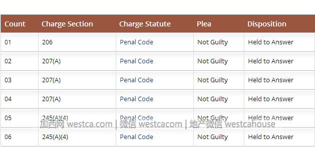 這張截圖來自審理該案的美國洛杉磯高院網站,顯示“大姐大”翟某面臨著6項刑事罪名指控。它們分別是:壹項折磨罪、叁項綁架罪和兩項毆打罪,前肆項皆是重罪,尤以折磨罪最為凶猛,該刑罰最高能夠判到“終身監禁”。翟某和另外兩位成年犯剛滿18歲,本案中還有未成年人參與,法官會先裁定這些15—18歲的學生走成人程序還是少年犯罪程序,再做相應處理,即使未成年也壹樣會被處罰。總之,每壹個人都面臨嚴厲懲罰,嚇得共同犯案的12人中,3人逃回中國。