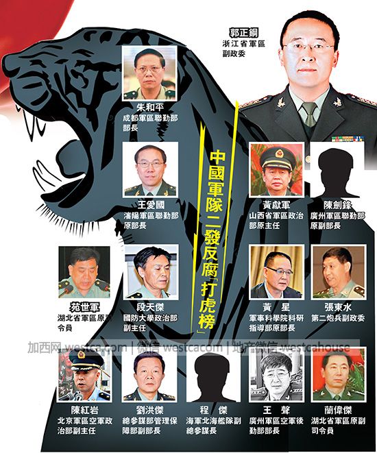 該來的遲早要來。2015年3月2日,反腐大潮又壹只靴子落地。軍隊在這壹天披露了14 名軍級以上幹部查處情況,其中,浙江省軍區副政委郭正鋼因涉嫌違法犯罪,已於2015年2月由軍事檢察機關立案偵查。這壹消息2月10日之後曾廣泛傳聞,不過,時隔20來天,到農歷新年之後才終為官方所證實。