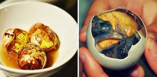 在中國南方和東南亞常見的壹道菜,是將快孵化的鴨蛋用開水煮熟,再敲開蛋殼食用,因為可以看見小鴨的骨骼和羽毛,不只歐美人,許多亞洲人也無法接受。