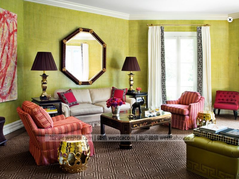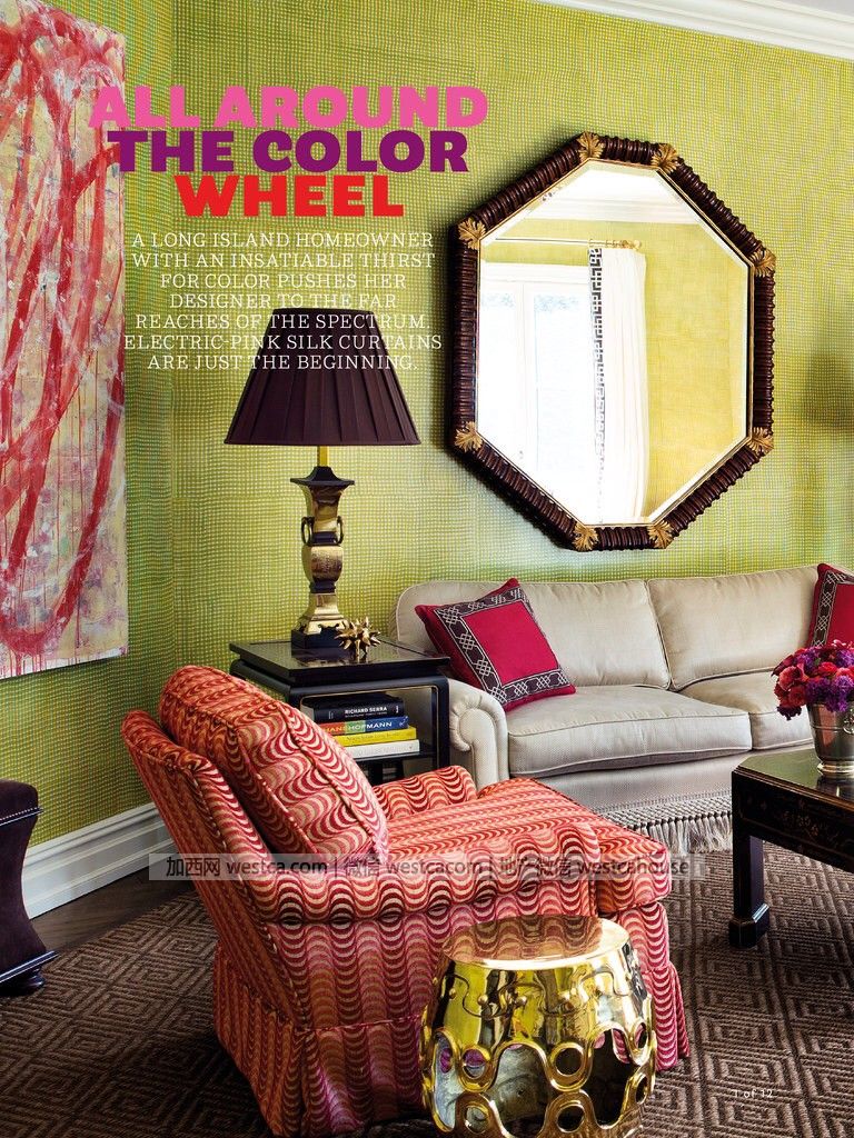 “我在工作室遞給每人壹副太陽鏡,然後喊道:准備好了嗎?因為這將是壹次瘋狂設計!”室內設計師Catherine Brown玩笑道。越飽和的顏色,客戶約喜歡,看上去簡直是把壹整套顏料“灑”在了房子裡;你能看到女主人穿著餐廳那樣的混搭服飾。Catherine從未使用過如此多的顏色,黃綠色的廚房、橘色的工作室、水藍色臥室,而這壹切都發生在壹套20世紀30年代的老房子裡!