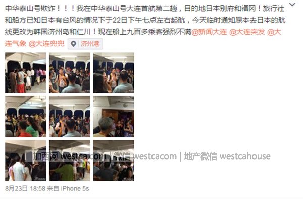 “说好的去日本,结果去了韩国,太搞笑了!”根据网友爆料,8月22日晚上7点从大连驶往日本福冈和下关的邮轮“中华泰山号”在24日凌晨停靠在了韩国济州岛,引起船上900多名游客不满。