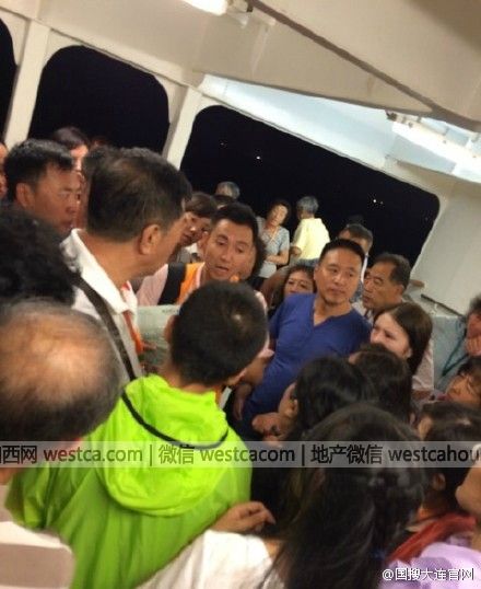 “中华泰山号”游客被告知航程改变时纷纷表示不满 图片来源:@国搜大连官网