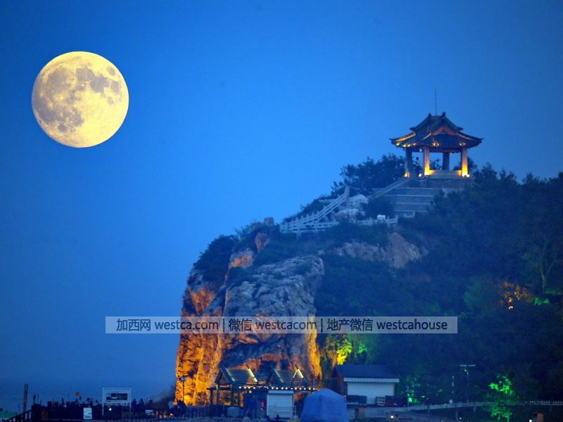 “海上生明月,天涯共此时”,中国北戴河海边的月亮悬挂天空。一年一度的中秋佳节之时,中国虽无缘“超级月亮”和月全食,但各地的中秋月也是美轮美奂,是九年来最大最圆的月亮。。