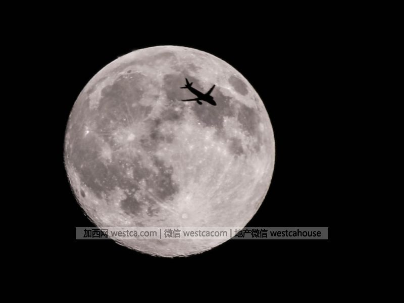 在江苏省盱眙县上空,一架飞机“穿越”圆月。