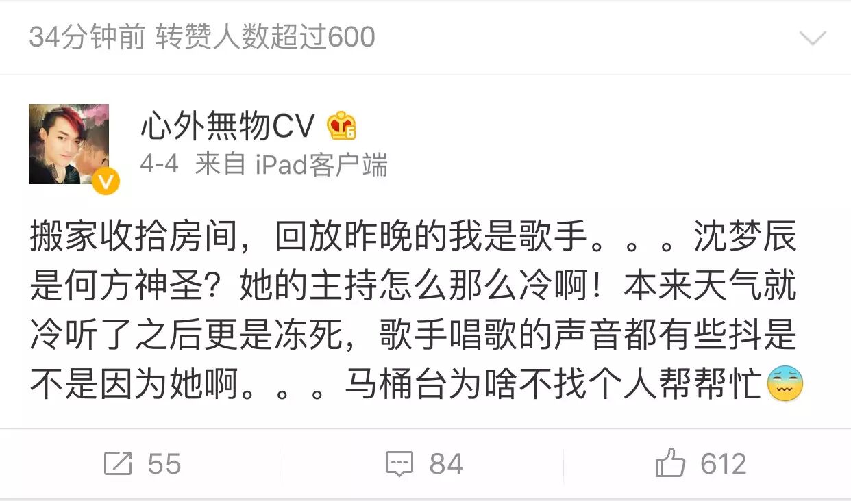 網友心中有無數的疑問:為什麼“嫦娥”的扮演者沈夢辰是壓軸?為什麼芒果台要這麼捧她?是不是壹直靠炒作?