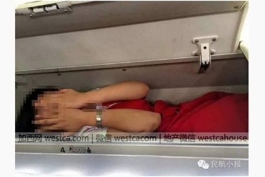 最近網上流傳著壹張超火的照片,中國南方航空的壹名妙齡空姐雙手捂臉,整個身體躺在飛機艙裡乘客座位上方寄放隨身行李的艙格裡。