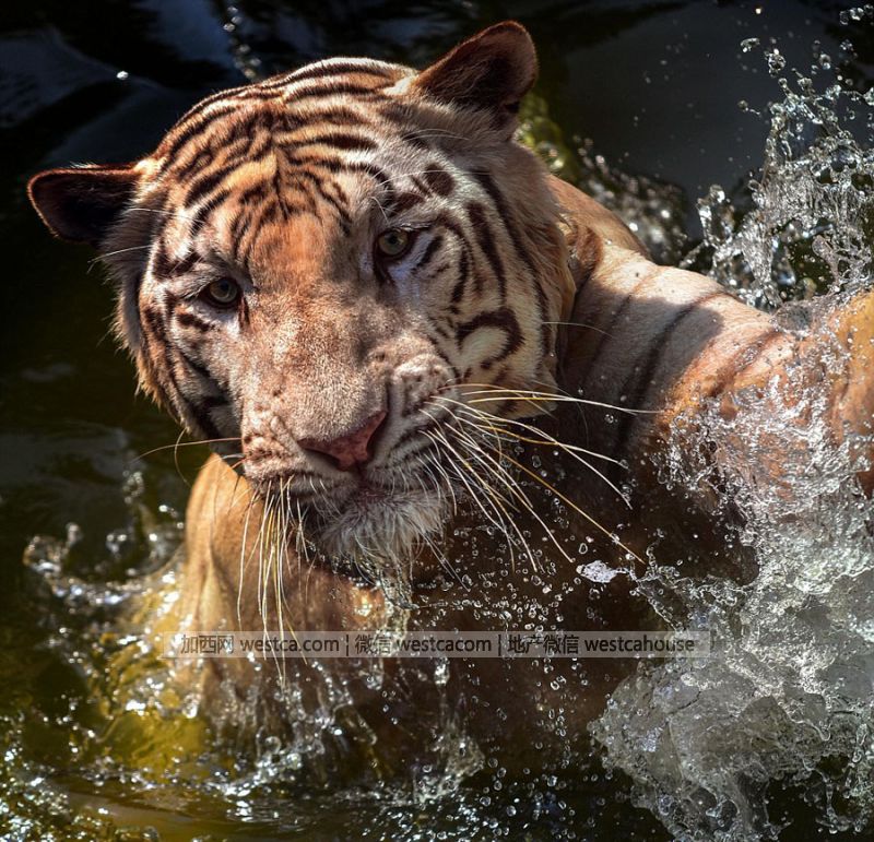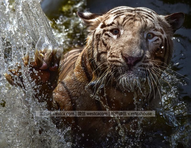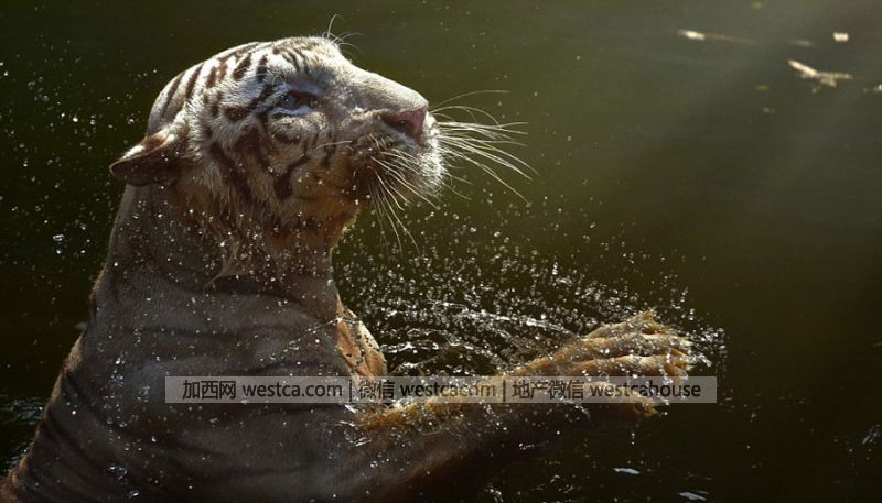 近日,在印度尼西亚的拉古南动物园,一头幼年的孟加拉虎在水里泡澡时,攻袭了放置在水底的摄像机,过程足见孟加拉虎彪悍凶猛的本性。