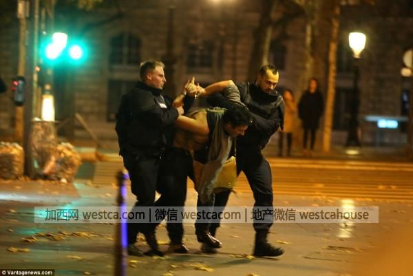 恐怖襲擊之後,法國警方在巴塔克蘭劇院外逮捕壹名男子。無法確認該男子是否與襲擊有關。