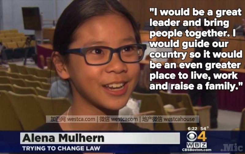 今年11月的壹天,壹個不可思議的場景發生了。阿莉娜,這個只有10歲的華裔小女孩,站在馬薩諸塞州議會的聽證會上,對著壹屋子的議員們慷慨陳詞,呼吁修改憲法。