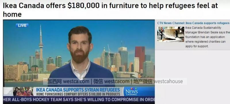 加拿大宜家通過難民安置計劃,提供高達$ 180,000美元的家居設施以幫助抵達的敘利亞難民。加拿大宜家表示活動將持續至12月19日,累計捐出$ 1.47加元。