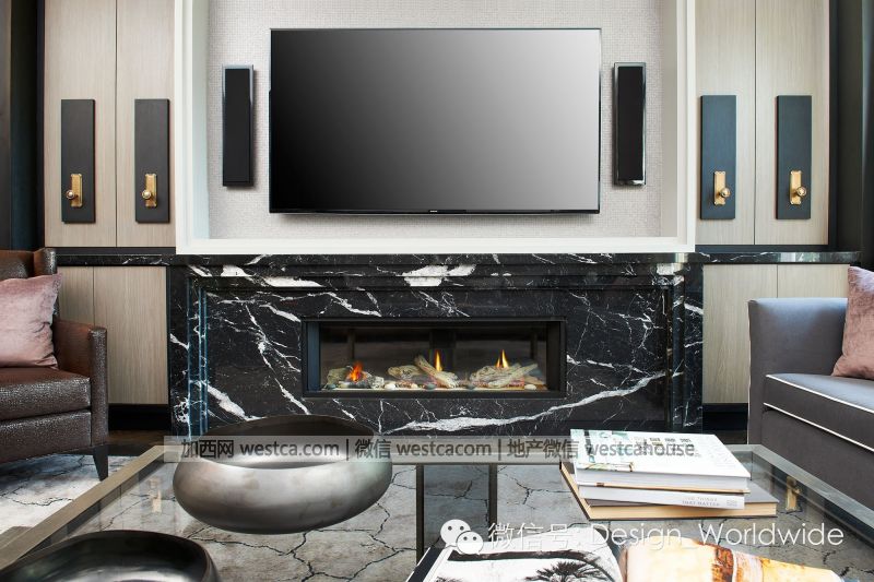 这对业主近期刚去了洛杉矶的London Hotel,对其大堂地板的边缘处理十分钟意,因此Stacey在设计这套三个卧室的公寓时让其更贴近都会生活,很多灵感来自高端时尚酒店。为了达到美学需要,Stacey铲除了原有的木地板,取而代之的是线条明朗的大理石式的瓷砖。她对厨房的处理异曲同工,拆除墙体,设置了不锈钢岛台、嵌入式橱柜,整个空间严丝合缝。