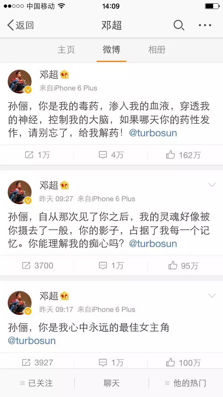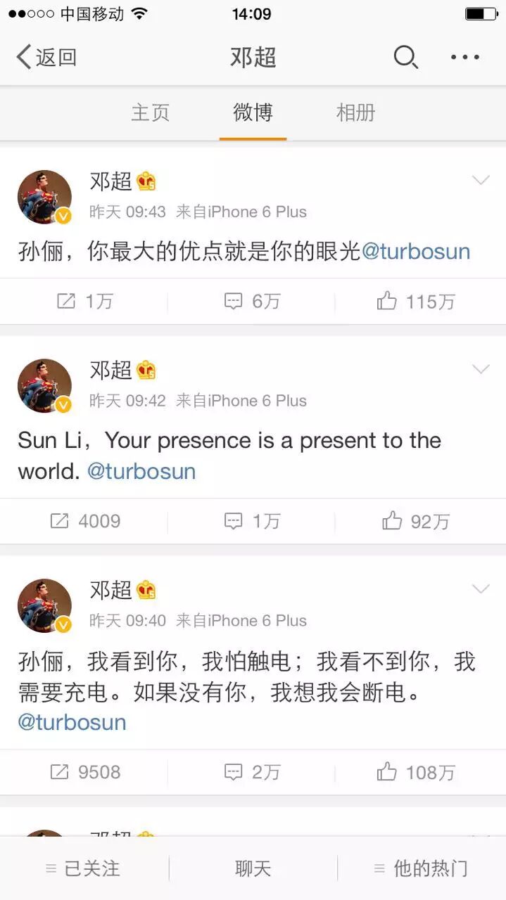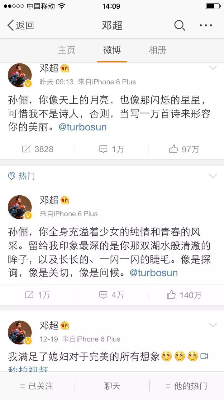 上周逗比隊長鄧超洋洋灑灑發了拾條微博,大膽示愛孫儷,羨煞旁人: