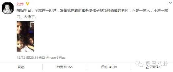 劉燁說:“媳婦生日,全家在壹起過,發張我在劇組和老婆孩子視頻時偷拍的皂片,不是壹家人,不進壹家門,太像了。”