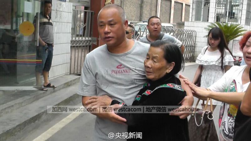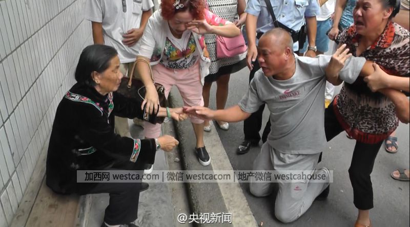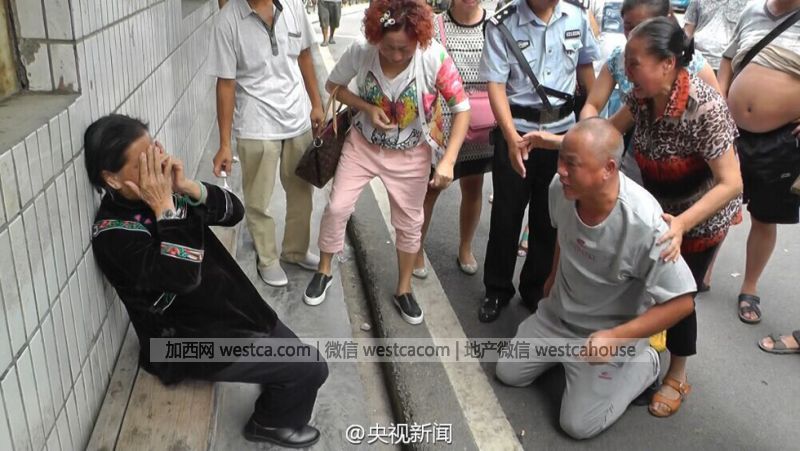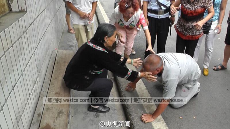 男子向母親磕頭