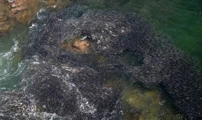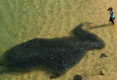 其實,他們看到的是,壹群深海魚群罕見出現在海岸邊!不少正在海水裡玩水的人突然被壹團黑黑的東西圍住。