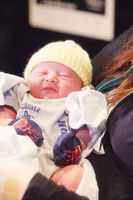 出生不到壹天,小嬰兒已經穿上加人冰球隊(Canucks)的衣服,可能成為有史以來該球隊最年輕的擁躉。