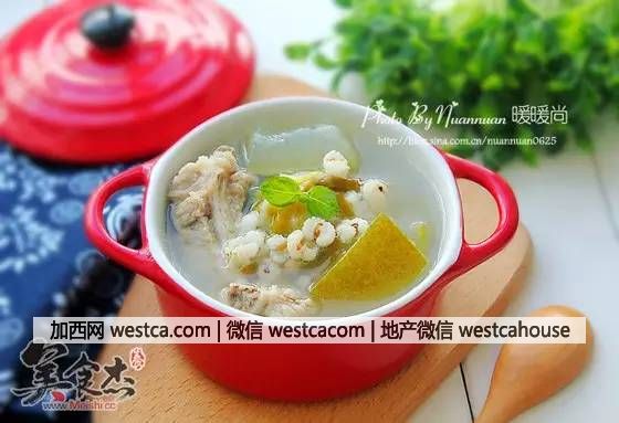 冬瓜400克、薏米80克、豬小排400克、食鹽5克、姜1小塊、細香蔥4棵、水3大碗、白胡椒粉3克