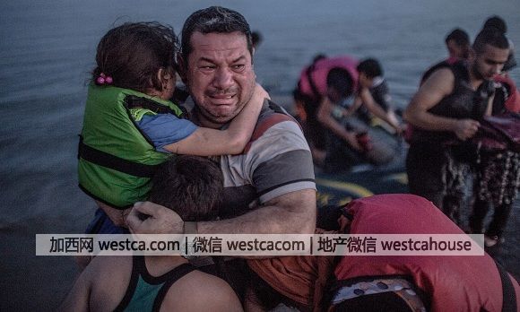 幸運的是,漸漸到來的黎明點亮了船上人的希望,在船搖搖欲墜的最後時刻,海岸線清晰起來。候在希臘科斯島岸邊的有救護人員,還有各國記者。紐約時報記者Daniel Etter就是在這個時候拍下了那張在社交網絡轉發量超過數拾萬的照片:爸爸Laith Majid Al-Amirij抱著他最小的兩個孩子,因為死裡逃生喜極而泣。壹時間,這張照片被瘋狂轉發,成為難民新聞的符號影像。他是難民,也是壹個父親,這個最為家常的稱呼最大程度地喚醒了人們的同理心,把生冷的數據具象成了與死亡擦肩而過的血肉之軀。
