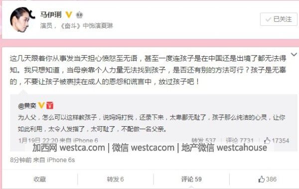 黃奕曾指出其前夫黃毅清教女兒說謊,利用孩子純潔的心靈,卑鄙無恥,不配做壹名父親。隨後還獲得馬伊琍、秦嵐等人的支持。