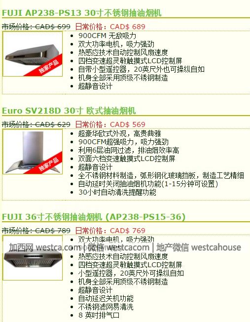 (加西網簡訊)加西商城現有多款靜音高效抽油煙機驚喜大促中:FUJI、KRUGER、EURO超多款式任你選~直降$50!