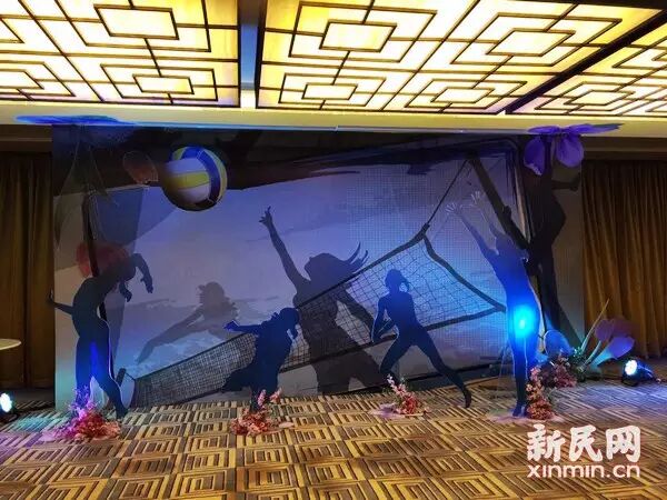 進門迎賓處的女排姑娘剪影背景板~ 這個設計真的很特別哦~