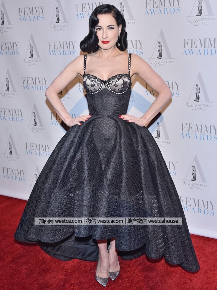 近日,脫衣舞娘蒂塔·萬提斯(Dita Von Teese)出席2016 FEMMY頒獎禮,蕾絲吊帶禮服酥胸紅唇性感妖嬈。