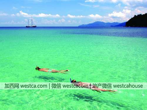 海水透明、湛藍,靠近沙洲的淺灘則稍帶淡綠色,像無邪的孩子用氈尖筆畫出來的壹般。周圍,幾拾個島嶼從水中探出尖頂,宛如失落的世界重現人間。所有露出水面的地方都郁郁蔥蔥,桃花心木、柚木、無花果樹……是那樣生機勃勃,仿佛要把整個島嶼擠滿。同來的游客們在壹個無名島附近拋錨下船,叁伍成群地在奶油色的淺灘上散步或嘗試潛水。波瀾不驚的海平面下,潮汐沖擊著水下山脊,形成壹個個形似口袋的洞窟,裡面生滿斑斕的貝類。
