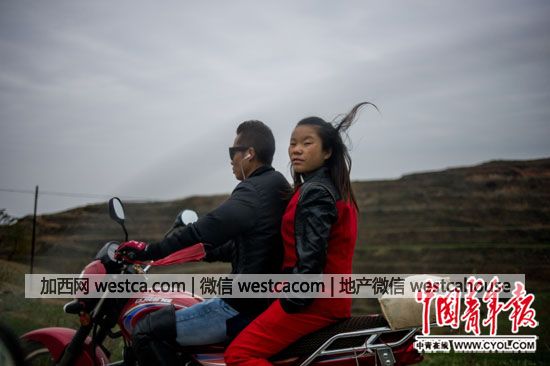 2015年10月29日,甘肅省天水市通往甘谷縣城的公路上,兩個年輕人騎著摩托車趕路。本報記者 李雋輝/攝