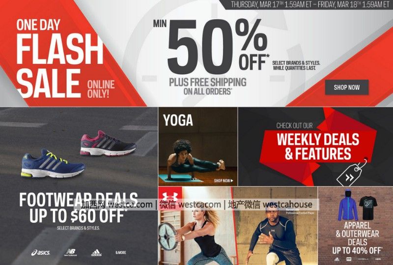 (加西網簡訊)Sport Chek加拿大官網現推出壹日閃售活動:精選大量商品5折起特賣!