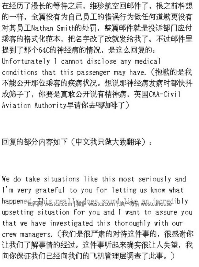 1、向維珍總部投訴後回復:抱歉不能公開此乘客的疾病,我們無法控制乘客的行為。全篇逃避責任無任何實質道歉!