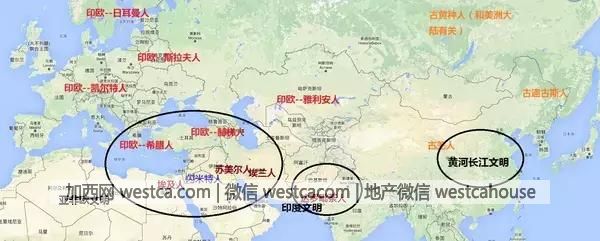 在欧洲到中亚广泛分布的——印欧人,这些人使用印欧语系语言(现在的英语法语等的祖先)