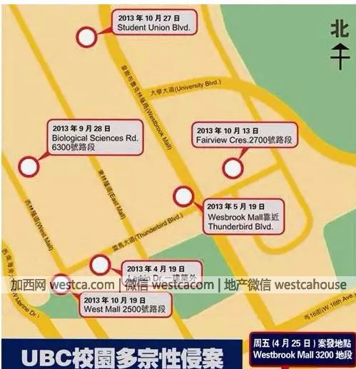 3月25日(周伍)晚上10時許,壹名20歲UBC大學女學生正在校園內獨行,路經校內Wesbrook Mall 3200號路段時,壹名事主不認識的男子突然從後邊樹叢撲出,將受害人抓緊,並以雙手將受害人猛力搖晃。其後歹徒強迫女事主俯臥在地上,並以下體部位在受 害人背後磨動,動作壹若性交。