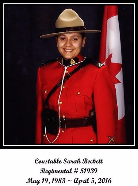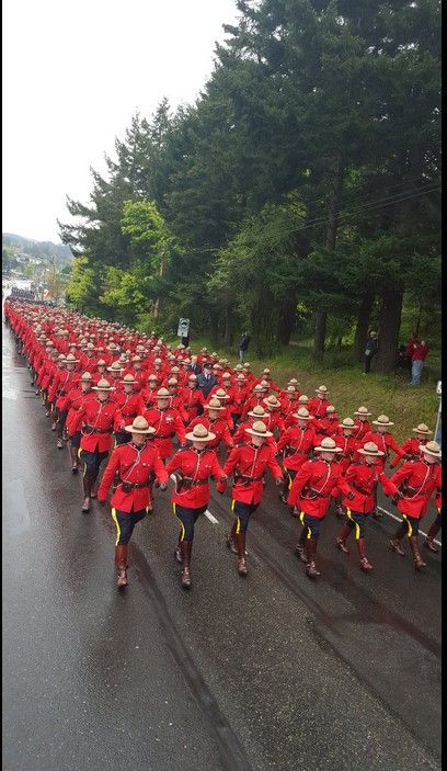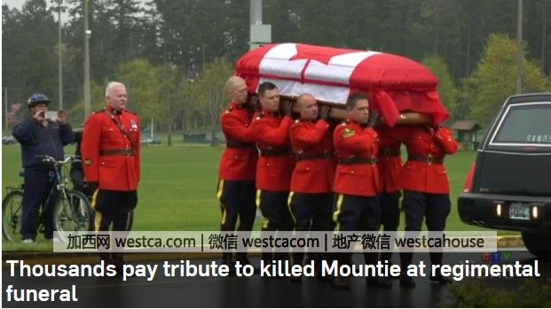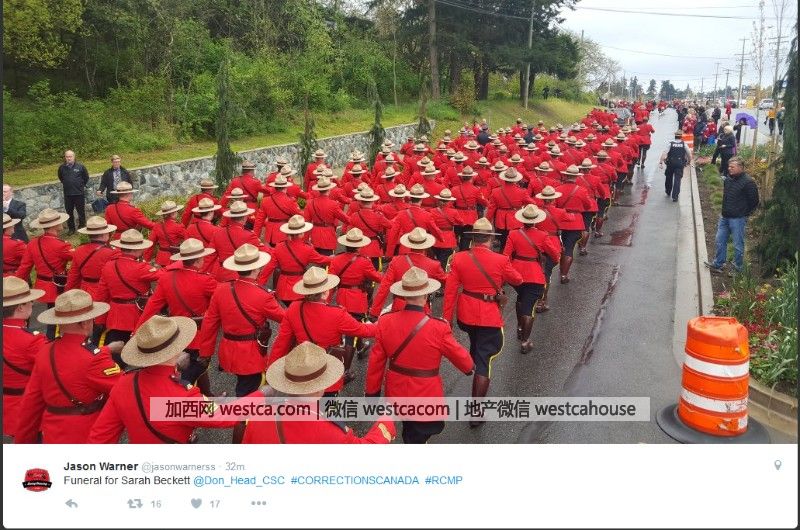 (加西網綜合)上個星期因公殉職的維多利亞女警察Sarah Beckett的葬禮於今天(4月12日)下午在維多利亞附近舉行,BC省和全國各地的皇家騎警都出席葬禮,不少民眾也站在路邊,送這位英雄女警最後壹程。