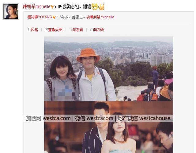 4月14日晚,楊佑寧通過微博曬和陳妍希6年前對比照。照片中,六年前的陳妍希明顯的嬰兒肥,如今由之前的包子臉變成了尖下巴,鎖骨明顯,身材纖細,瘦身成功。楊佑寧還配文寫道:“六年前,好勵志!”並艾特陳妍希。