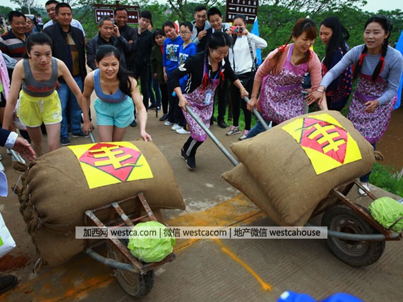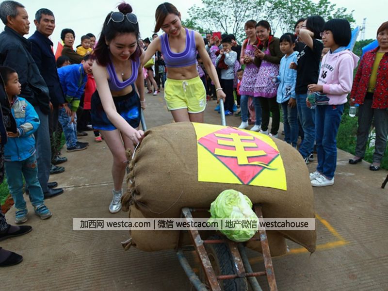 在“獨輪車運糧”比賽中更是看點拾足,壹群裝扮火辣的美女與當地村裡的村姑展開了競爭,現場氣氛拾分熱烈。