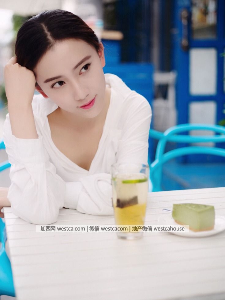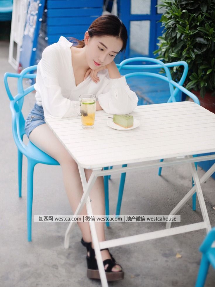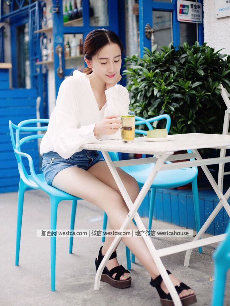 她上身穿白色簡單襯衣,下身搭配牛仔熱褲出鏡,簡約中不失婉約氣質,格外甜美的笑容,盡情享受時光的靜謐。