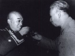 1955年9月27日,劉少奇出席授予朱德等拾大元帥軍銜和勳章的典禮,向彭德懷元帥敬酒祝賀(圖源:浙江圖書館)