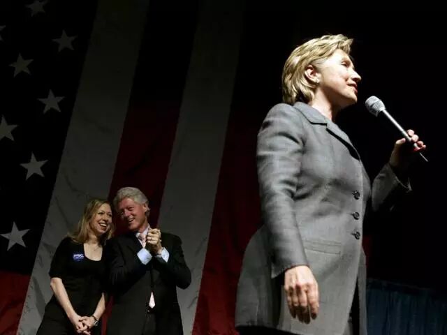 Behind every great woman: the Clintons – Chelsea, Bill and Hillary – at a rally in New York KEITH BEDFORD/Reuters