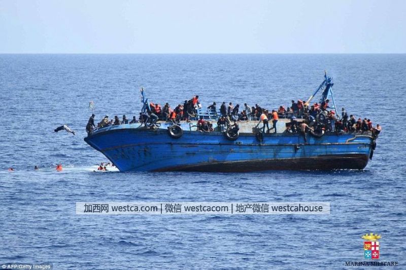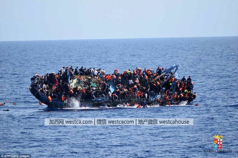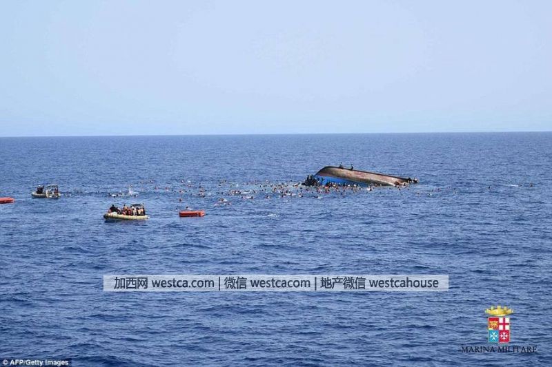 在船翻的的時候,落海難民拼命游泳逃生。船在翻之後下沉,會在附近產生漩渦把落海的人“吸”入水底。據意大利方面透露,在短短的48小時內,就在地中海上救起了超6000名難民。