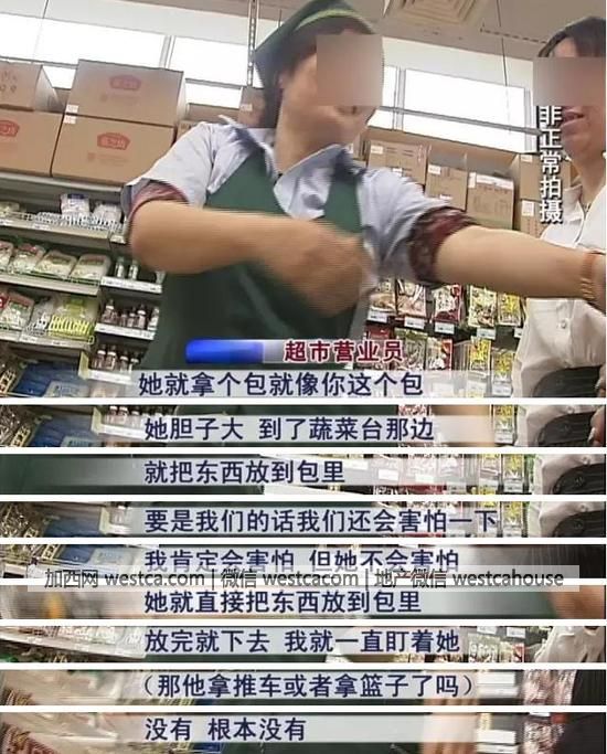 超 市營業員:像我們偷東西的話,我們心裡有點害怕,她並不是,她就拿個包就像你這個包,她膽子大,到了蔬菜台那邊,就把東西放到包裡。要是我們的話我們還會 害怕壹下,我肯定會害怕,但她不會害怕,她就直接把東西放到包裡,放完就下去,我就壹直盯著她。(那他拿推車或者拿籃子了嗎?)沒有,根本沒有。
